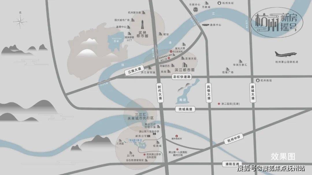 年代高架与中环快速路(在建)在此交汇,将武林、钱新、滨江、奥体等地归入30分钟都市圈