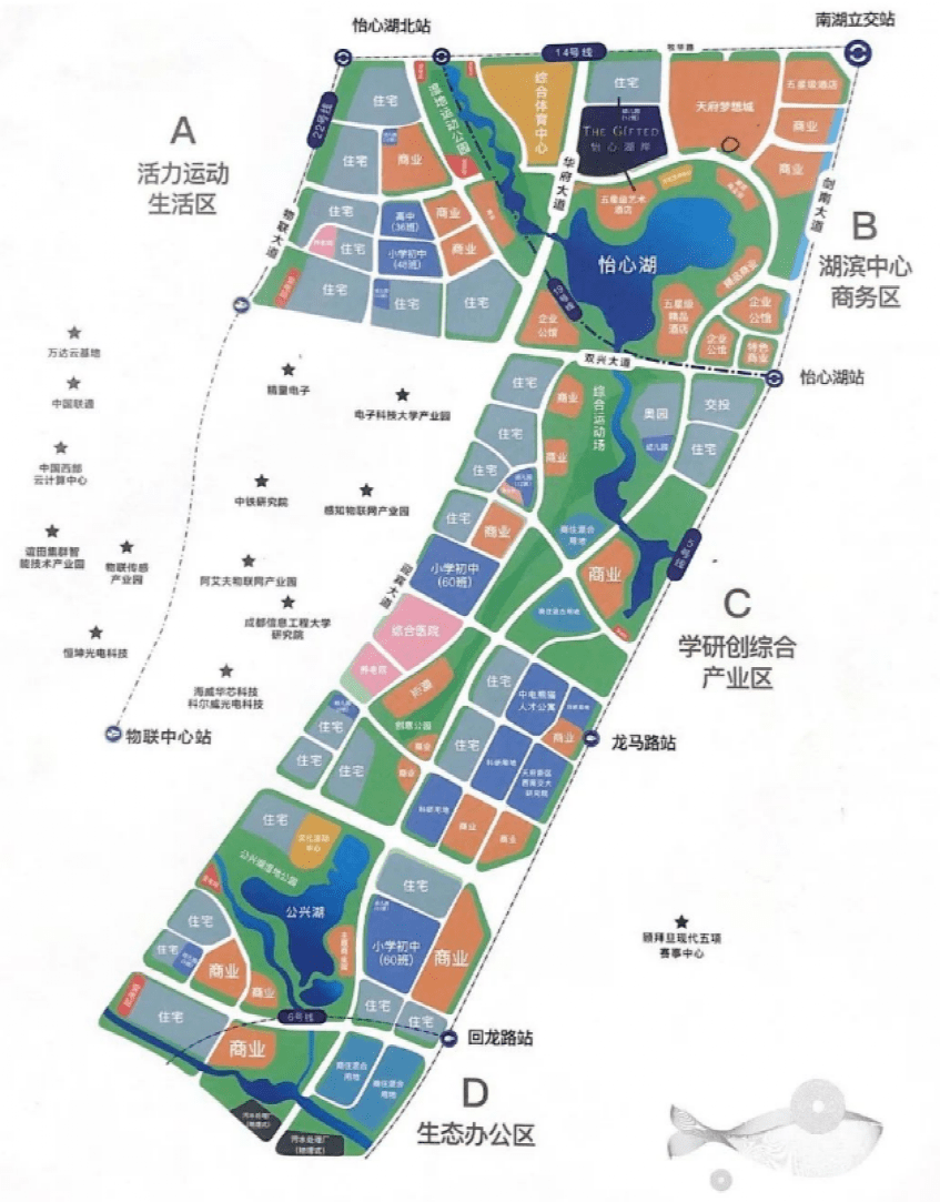 据揭露材料介绍,怡心湖水域面积约1000亩,其间滨湖生态廊道就有10公里。以“环湖公园科技城”为开展愿景的天府怡心湖,设置天府怡心湖A区(生机运动生活区)、B区(滨湖中心商务区)、C区(学研创归纳工业区)、D区(生态作业区),还有和D区一同建造的E区,E区紧紧邻D区,大约掩盖到双流黄甲大街兰家沟的方位。